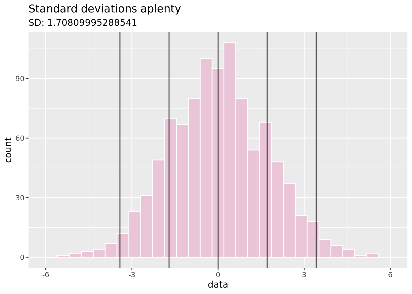 ggtitle("Standard deviations aplenty", paste("SD:", sd(data$data)))