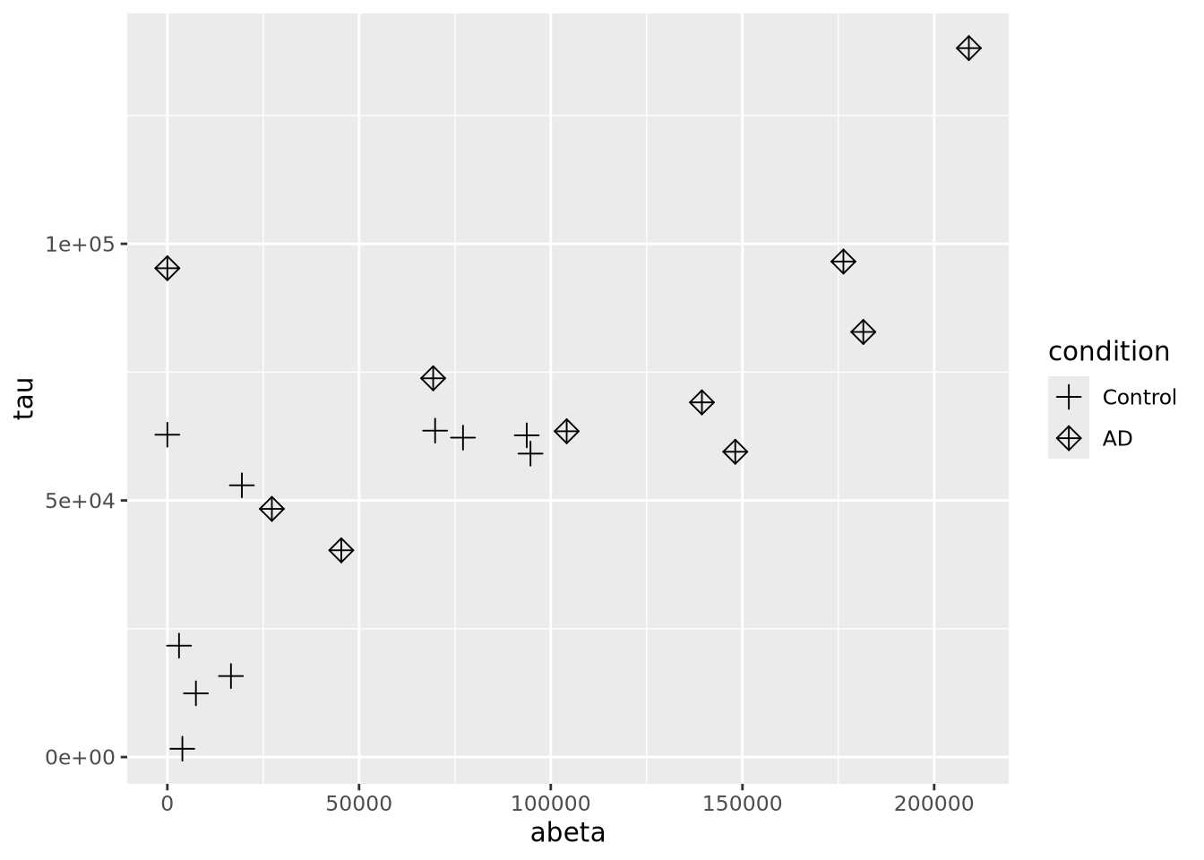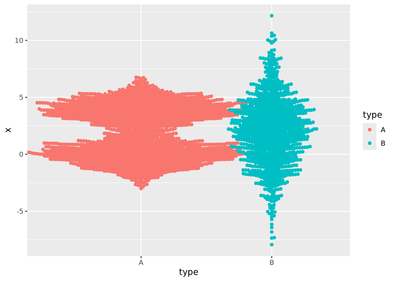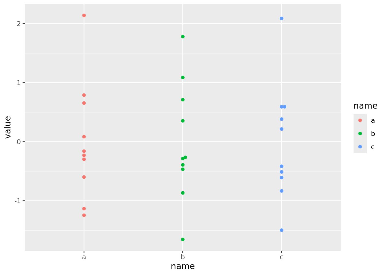 ggplot(aes(x=x, y=y, size=`x times y`, color=z, shape=category)) +