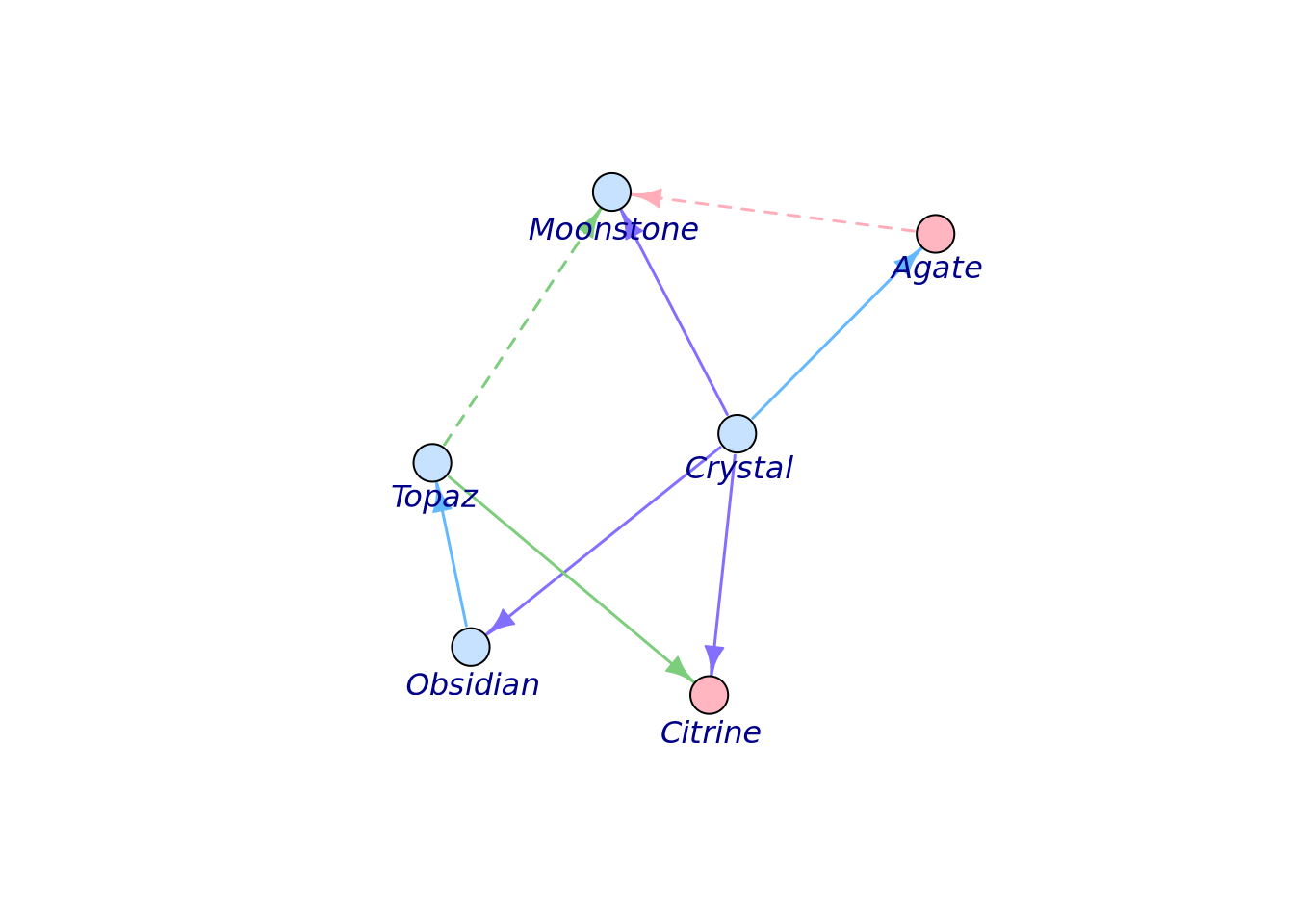 "to" = c("Moonstone", "Citrine", "Obsidian", "Agate", "Citrine", "Topaz", "Moonstone", "Moonstone"),