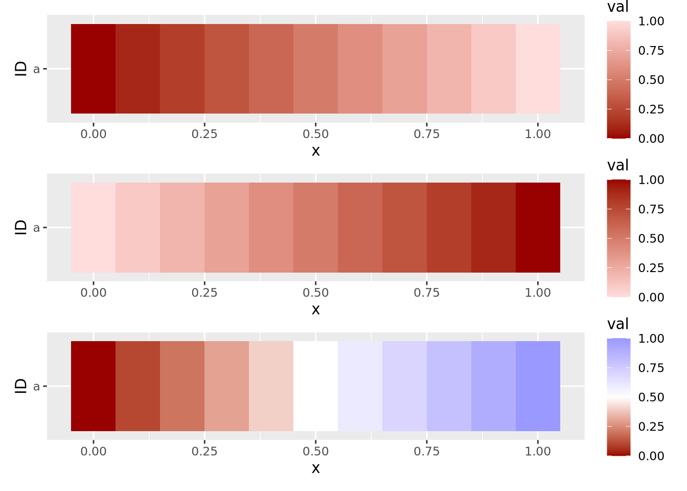 Examples of each of these encodings is depicted for a fictitious dataset of values between zero and one in the following figure: