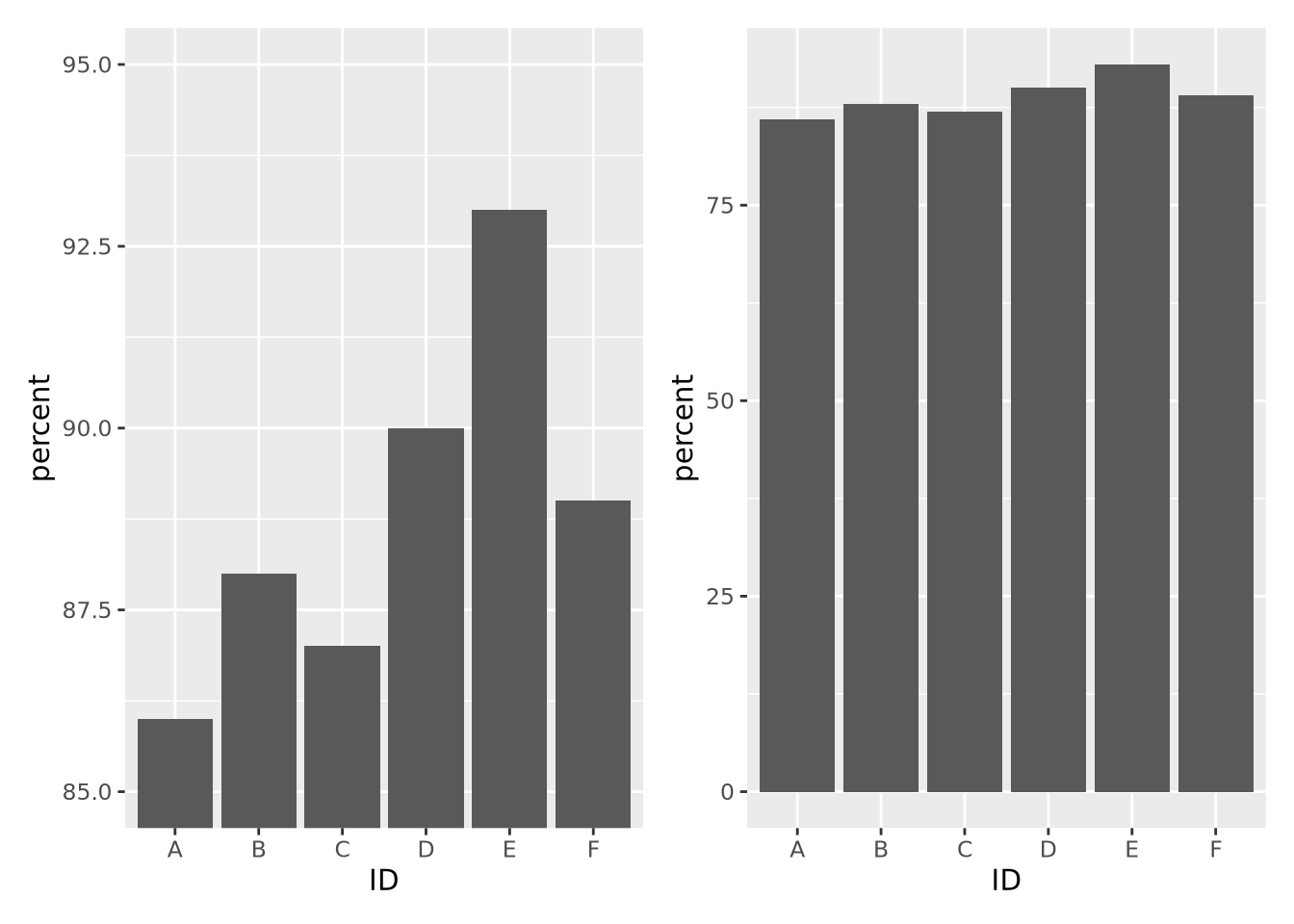 Each of these perceptual biases relate to how we interpret many common data visualization strategies. We cannot avoid making these interpretive errors via our cognition alone, but we can use this knowledge in the design of our plots to mitigate their effects. To quickly summarize the perceptual biases we have demonstrated: