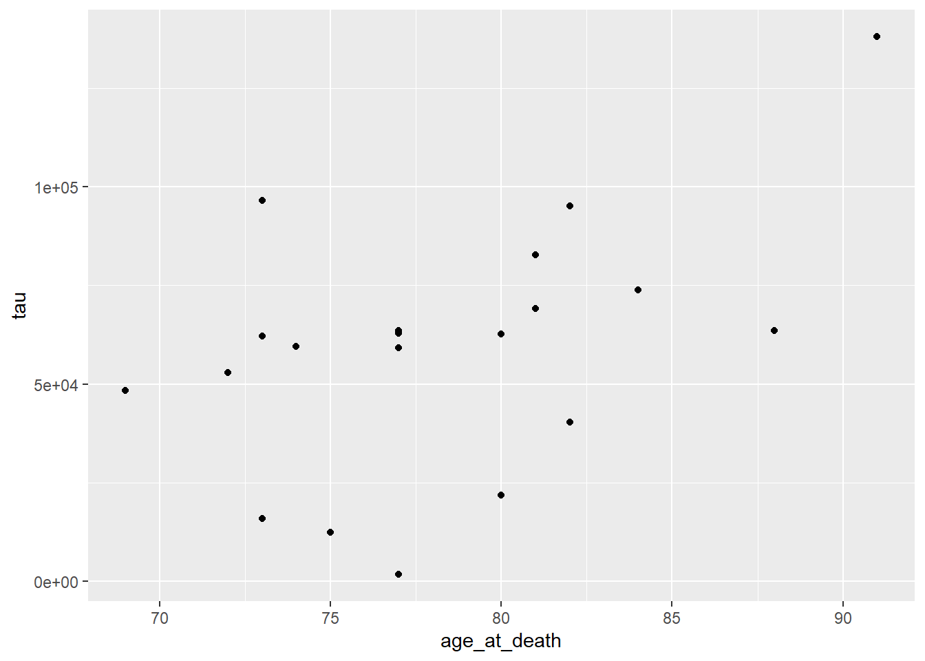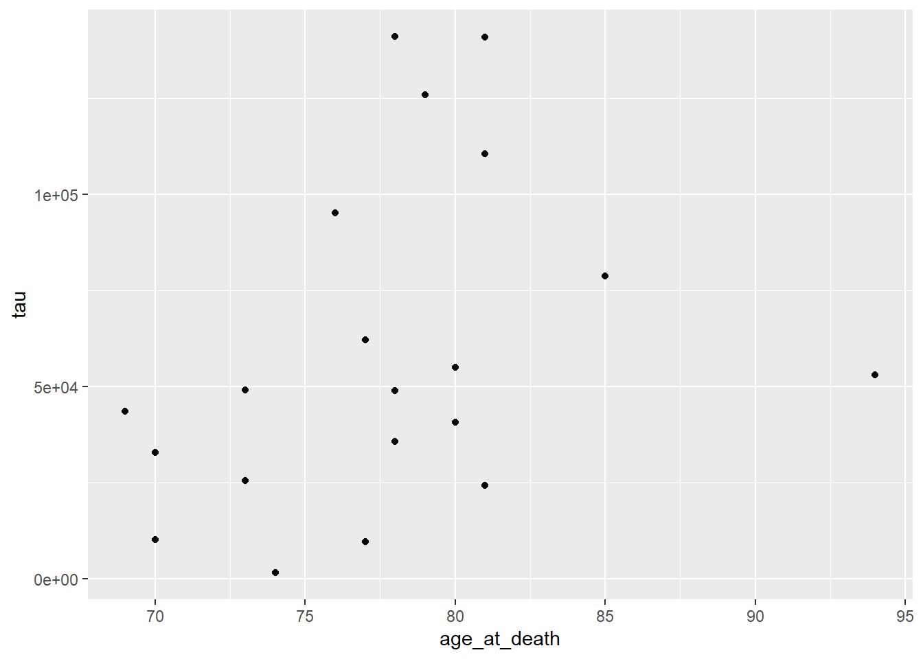 ggplot(data=ad_metadata, mapping = aes(x = age_at_death, y=tau)) +