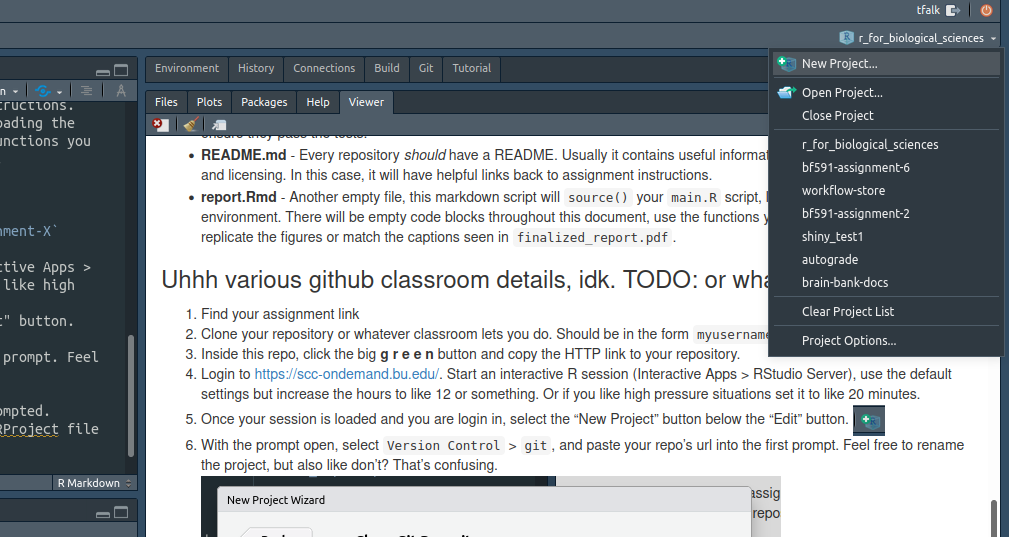 When starting a project there are a small number of steps to get things set up just right in order to have a smooth and seamless experience. While it is absolutely possible to complete these projects on your own machine and your own installation of R and RStudio, it will be easier and faster to do your work on BU’s SCC. The experience will be more straightforward and basically identical to doing it on your own.