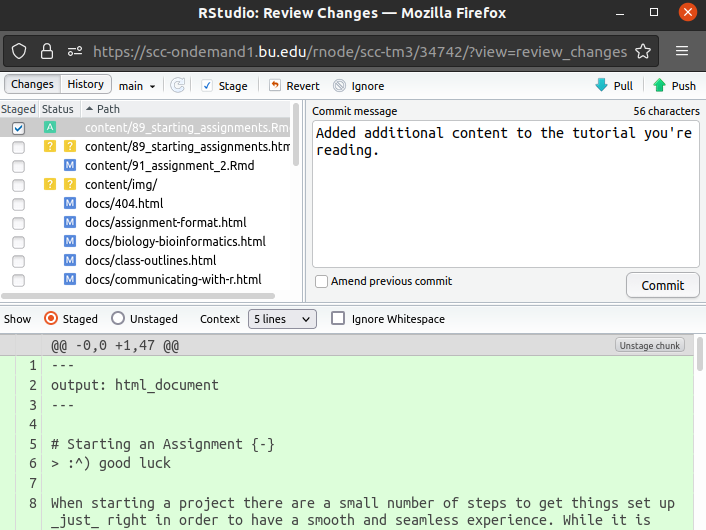 With the RProject set up, you now have a directory on SCC that has cloned your