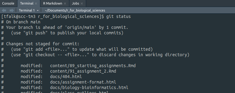 to see what files have been changed. Wow! Looks like I have a lot of stuff to deal with. What’s nice is thegit