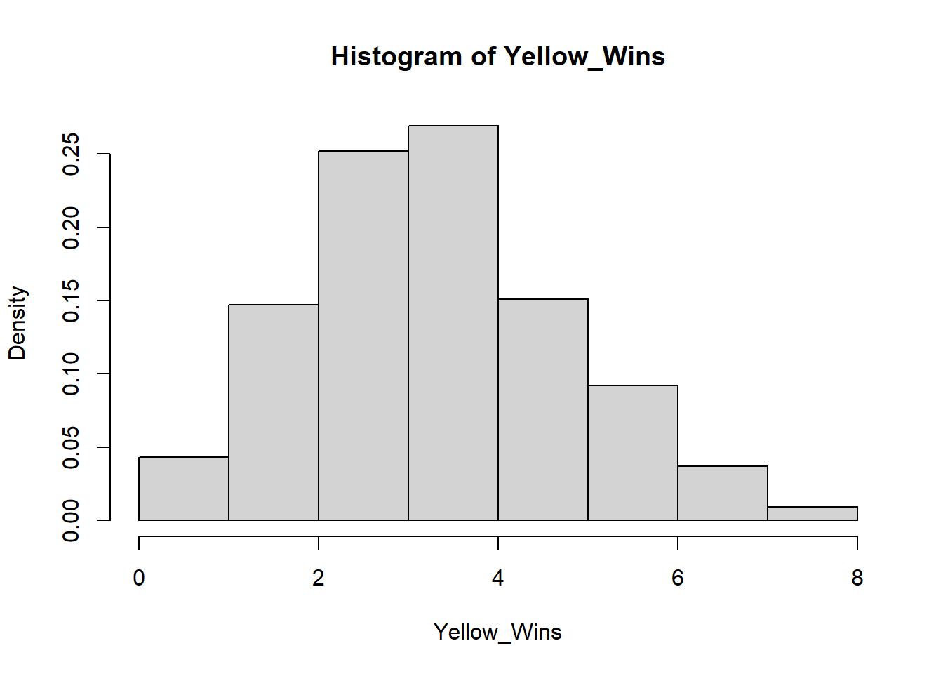 Yellow_Wins hist(Yellow_Wins, freq=FALSE, right=FALSE)